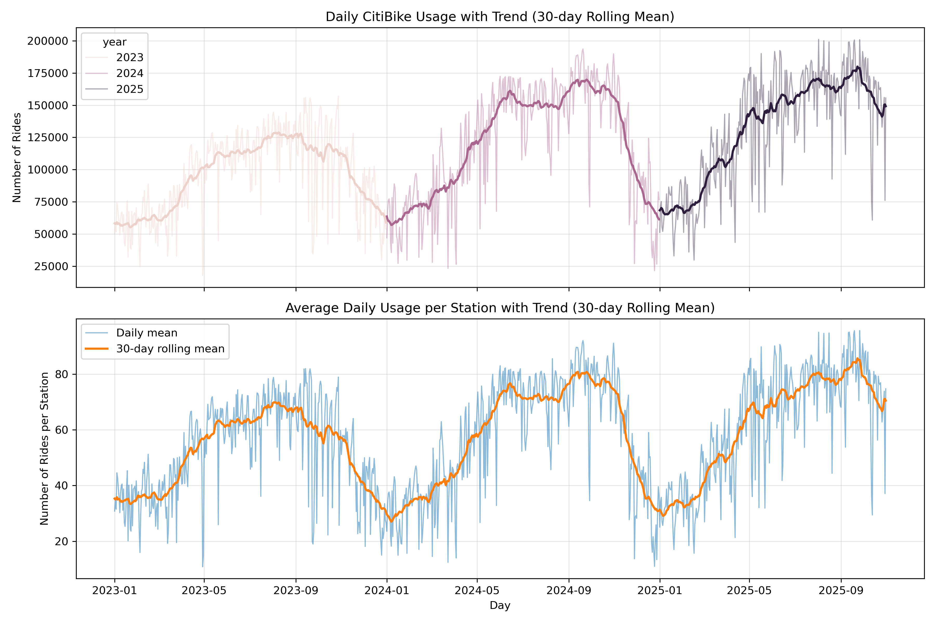 - CitiBike demand is strongly seasonal and growth has slowed since 2024.