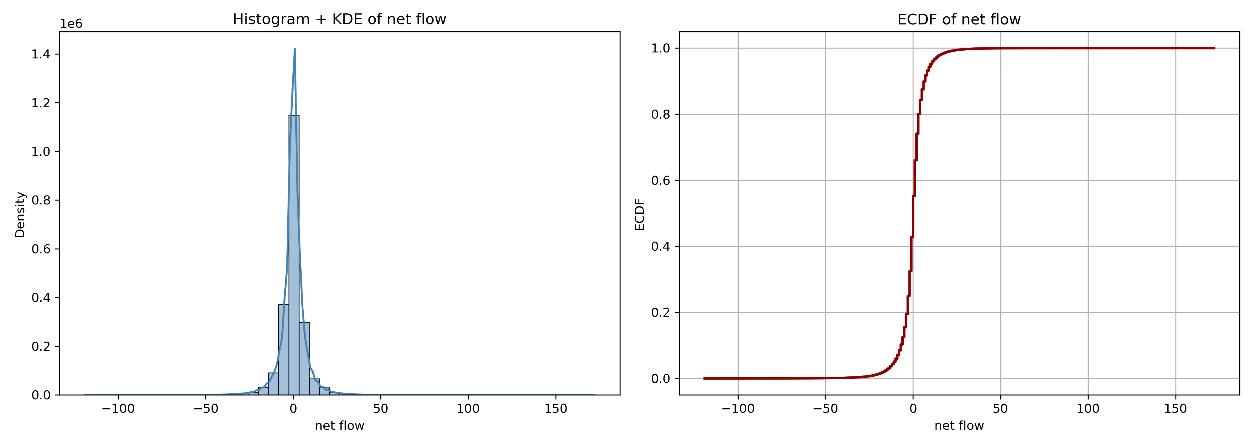 - Net-flow dynamics: lag-1, lag-7, rolling mean.